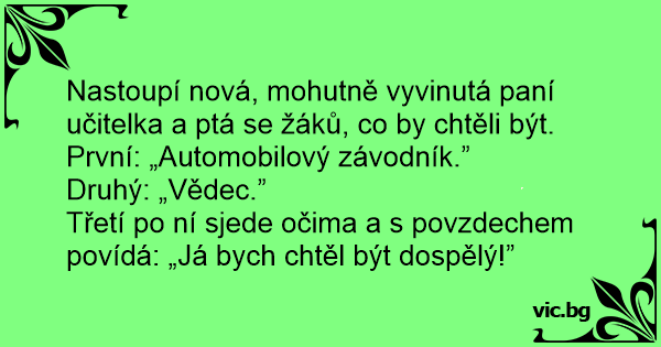 Třetí po ní sjede očima a s povzdechem povídá: „Já bych chtěl být dospělý!”