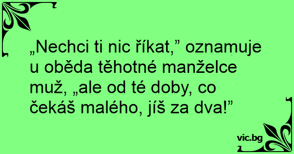 „Nechci ti nic říkat,” oznamuje u oběda těhotné manželce muž, „ale od té doby, co čekáš malého, jíš za dva!”