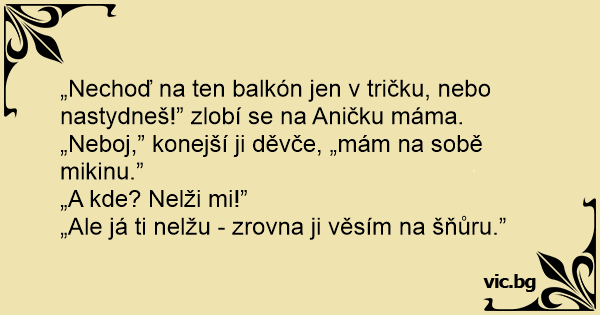 „Nechoď na ten balkón jen v tričku, nebo nastydneš!” zlobí se na Aničku máma.