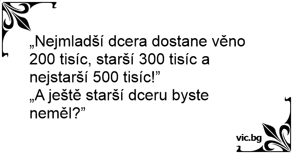 „Nejmladší dcera dostane věno 200 tisíc, starší 300 tisíc a nejstarší 500 tisíc!”