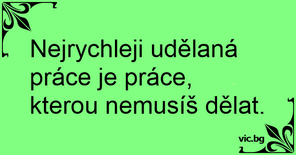 Nejrychleji udělaná práce je práce, kterou nemusíš dělat.