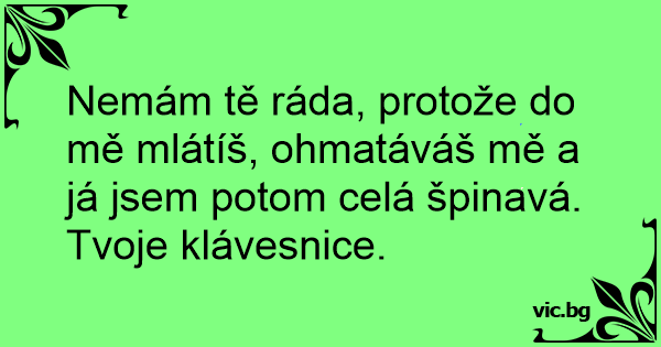 Nemám tě ráda, protože do mě mlátíš, ohmatáváš mě a já jsem potom celá špinavá. Tvoje klávesnice.