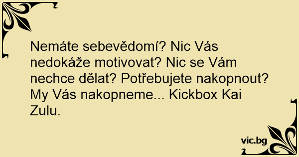 Nemáte sebevědomí? Nic Vás nedokáže motivovat? Nic se Vám nechce dělat? Potřebujete nakopnout?