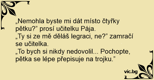 „Nemohla byste mi dát místo čtyřky pětku?” prosí učitelku Pája.