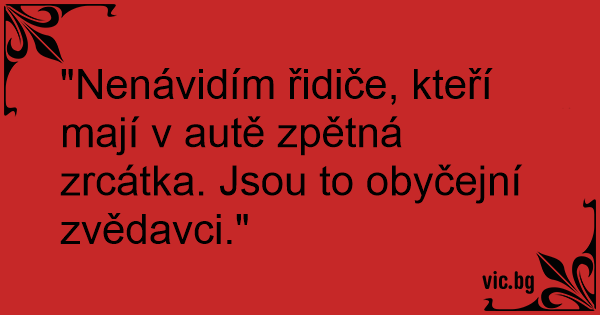 "Nenávidím řidiče, kteří mají v autě zpětná zrcátka. Jsou to obyčejní zvědavci."