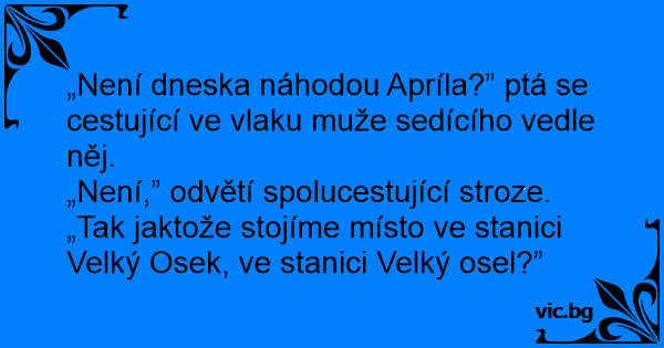 „Není dneska náhodou Apríla?” ptá se cestující ve vlaku muže sedícího vedle něj.
