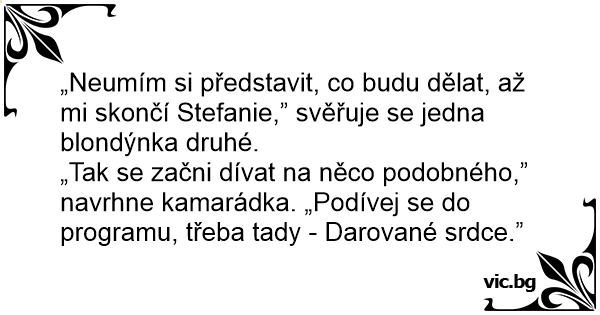 „Tak se začni dívat na něco podobného,” navrhne kamarádka. „Podívej se do programu, třeba tady - Darované srdce.”