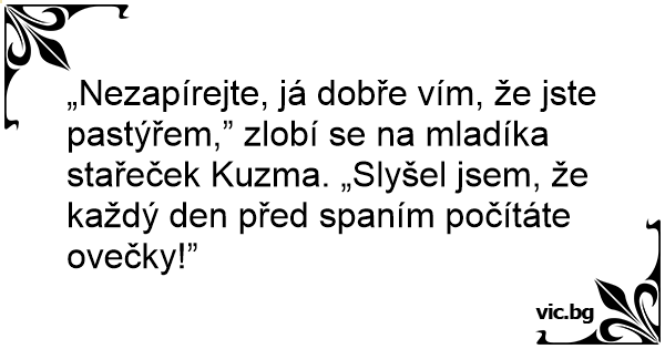 „Nezapírejte, já dobře vím, že jste pastýřem,” zlobí se na mladíka stařeček Kuzma. „Slyšel jsem, že každý den před spaním počítáte ovečky!”