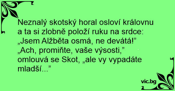 „Ach, promiňte, vaše výsosti,” omlouvá se Skot, „ale vy vypadáte mladší...”