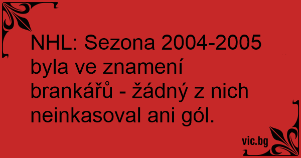 Български English Deutsch Español Русский Français Italiano Ελληνικά Македонски Türkçe Українська Português Polski Svenska Nederlands Dansk Norsk Suomi Magyar Româna NHL: Sezona 2004-2005 byla ve znamení brankářů - žádný z nich neinkasoval ani gól. Lietuvių Latviešu Hrvatski