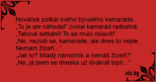 „To je ale náhoda!” zvolal kamarád radostně. „Takové setkání! To se musí oslavit!”