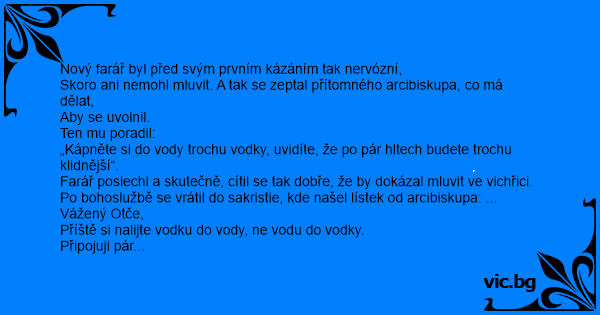 - Svěcená voda je na požehnání, nikoliv na osvěžení zátylku.