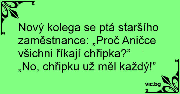 Nový kolega se ptá staršího zaměstnance: „Proč Aničce všichni říkají chřipka?”