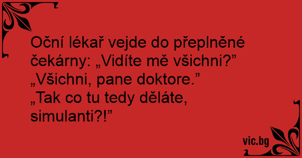 Oční lékař vejde do přeplněné čekárny: „Vidíte mě všichni?”