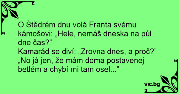 O Štědrém dnu volá Franta svému kámošovi: „Hele, nemáš dneska na půl dne čas?”