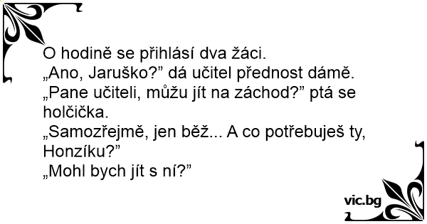 „Pane učiteli, můžu jít na záchod?” ptá se holčička.