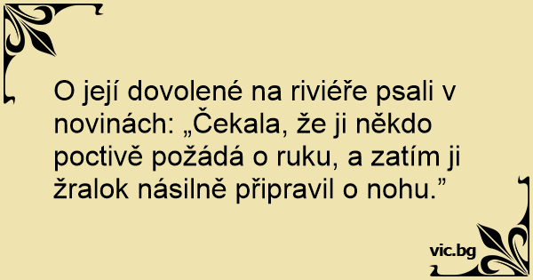 O její dovolené na riviéře psali v novinách: „Čekala, že ji někdo poctivě požádá o ruku, a zatím ji žralok násilně připravil o nohu.”