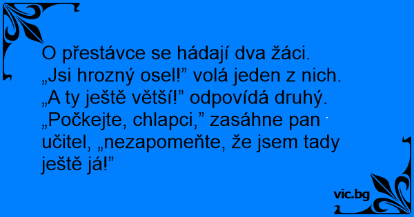 „Počkejte, chlapci,” zasáhne pan učitel, „nezapomeňte, že jsem tady ještě já!”