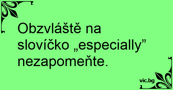 Obzvláště na slovíčko „especially” nezapomeňte.