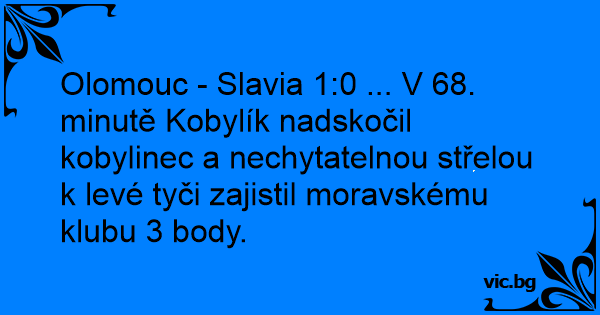 Olomouc - Slavia 1:0 ... V 68. minutě Kobylík nadskočil kobylinec a nechytatelnou střelou k levé tyči zajistil moravskému klubu 3 body.