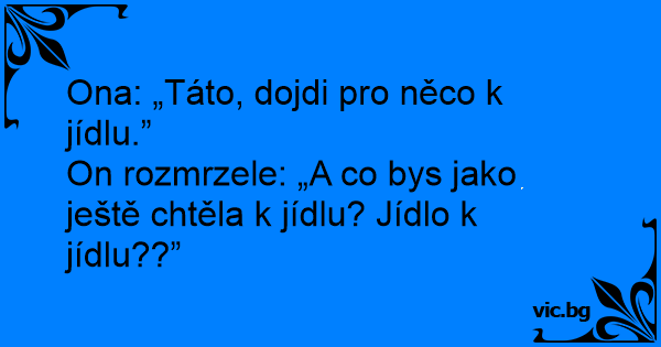 Ona: „Táto, dojdi pro něco k jídlu.”