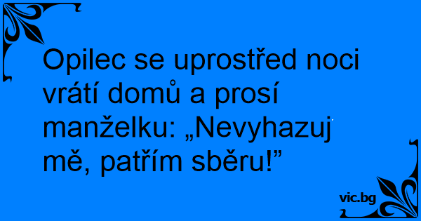 Opilec se uprostřed noci vrátí domů a prosí manželku: „Nevyhazuj mě, patřím sběru!”