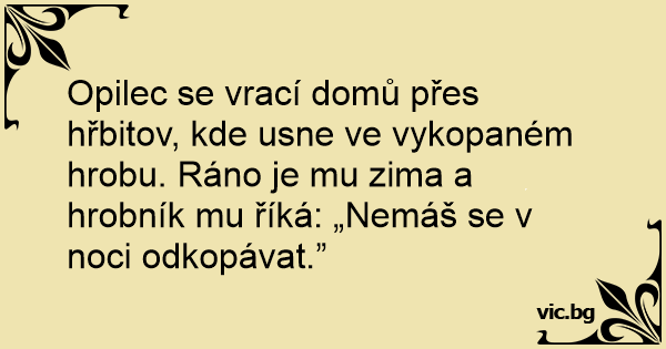 Opilec se vrací domů přes hřbitov, kde usne ve vykopaném hrobu. Ráno je mu zima a hrobník mu říká: „Nemáš se v noci odkopávat.”