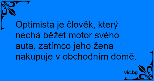 Optimista je člověk, který nechá běžet motor svého auta, zatímco jeho žena nakupuje v obchodním domě.
