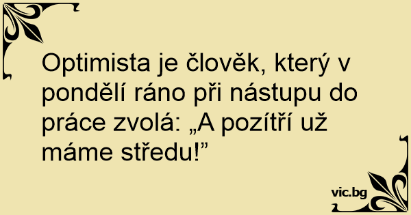 Optimista je člověk, který v pondělí ráno při nástupu do práce zvolá: „A pozítří už máme středu!”