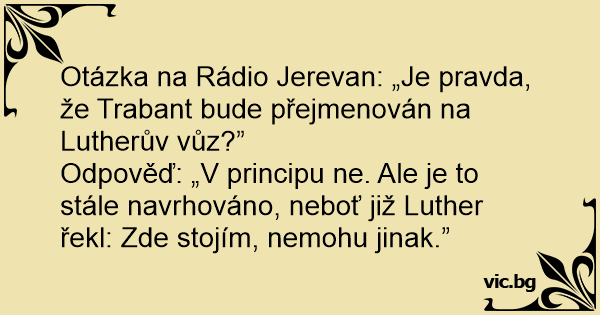 Otázka na Rádio Jerevan: „Je pravda, že Trabant bude přejmenován na Lutherův vůz?”