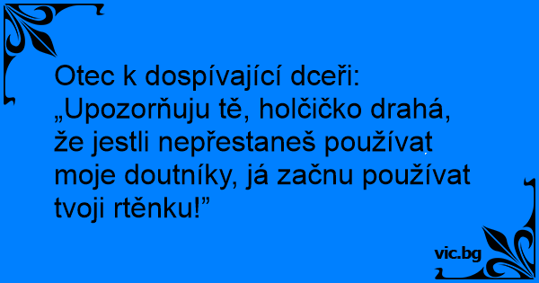 Otec k dospívající dceři: „Upozorňuju tě, holčičko drahá, že jestli nepřestaneš používat moje doutníky, já začnu používat tvoji rtěnku!”