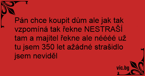 Pán chce koupit dům ale jak tak vzpomíná tak řekne NESTRAŠÍ tam a majitel řekne ale néééé už tu jsem 350 let ažádné strašidlo jsem neviděl
