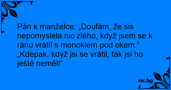 Pán k manželce: „Doufám, že sis nepomyslela nic zlého, když jsem se k ránu vrátil s monoklem pod okem.”