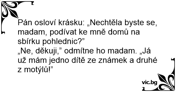 „Ne, děkuji,” odmítne hо madam. „Já už mám jedno dítě ze známek a druhé z motýlů!”