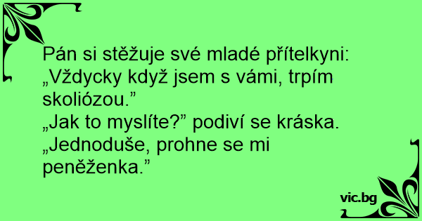 Pán si stěžuje své mladé přítelkyni: „Vždycky když jsem s vámi, trpím skoliózou.”