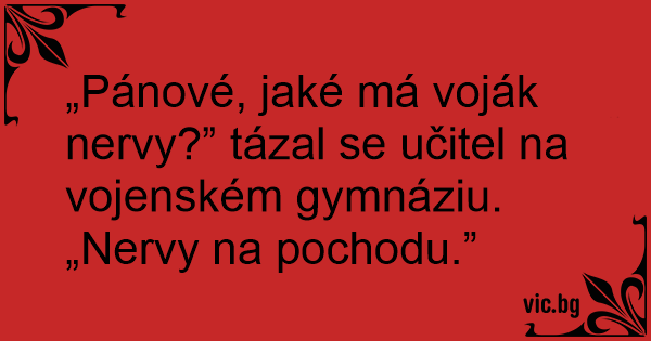„Pánové, jaké má voják nervy?” tázal se učitel na vojenském gymnáziu.