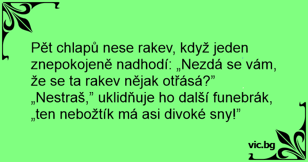 Pět chlapů nese rakev, když jeden znepokojeně nadhodí: „Nezdá se vám, že se ta rakev nějak otřásá?”