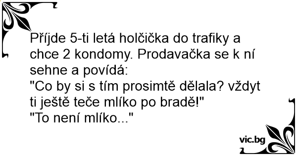 Příjde 5-ti letá holčička do trafiky a chce 2 kondomy. Prodavačka se k ní sehne a povídá: