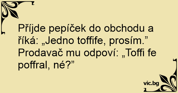 Prodavač mu odpoví: „Toffi fe poffral, né?”