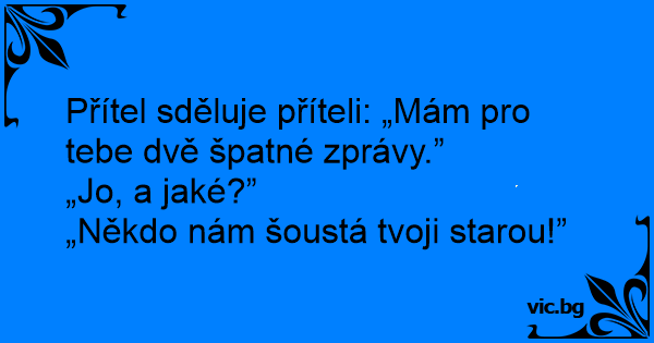 Přítel sděluje příteli: „Mám pro tebe dvě špatné zprávy.”
