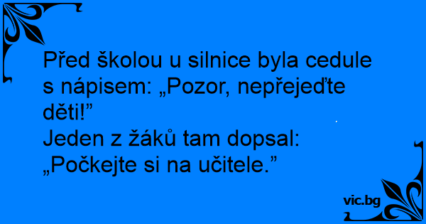 Před školou u silnice byla cedule s nápisem: „Pozor, nepřejeďte děti!”