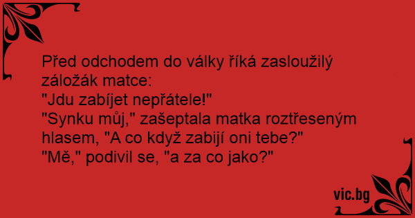"Synku můj," zašeptala matka roztřeseným hlasem, "A co když zabijí oni tebe?"
