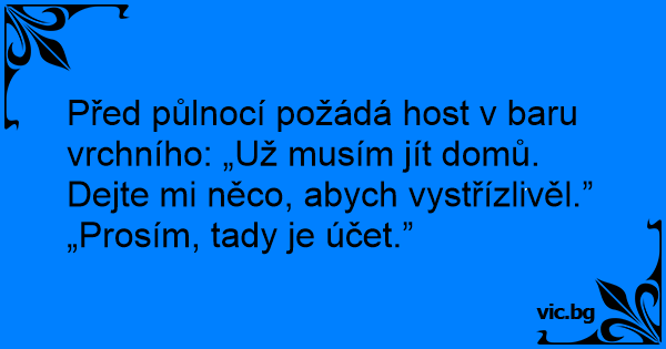 Před půlnocí požádá host v baru vrchního: „Už musím jít domů. Dejte mi něco, abych vystřízlivěl.”