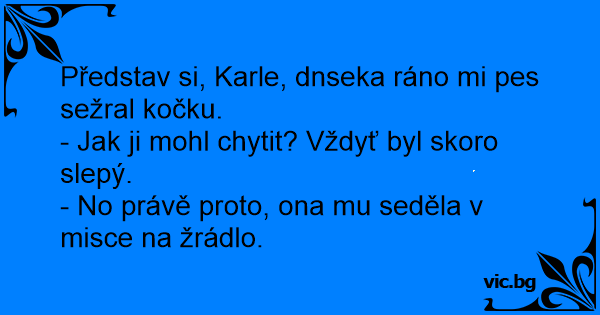 Představ si, Karle, dnseka ráno mi pes sežral kočku.