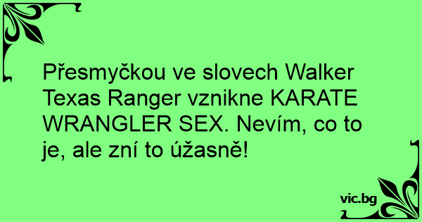 Přesmyčkou ve slovech Walker Texas Ranger vznikne KARATE WRANGLER SЕX. Nevím, co to je, ale zní to úžasně!
