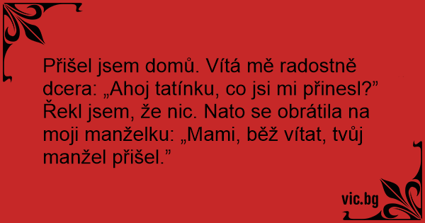 Přišel jsem domů. Vítá mě radostně dcera: „Ahoj tatínku, co jsi mi přinesl?”