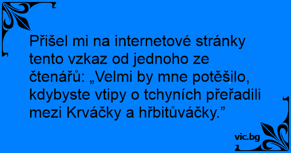 Přišel mi na internetové stránky tento vzkaz od jednoho ze čtenářů: „Velmi by mne potěšilo, kdybyste vtipy o tchyních přeřadili mezi Krváčky a hřbitůváčky.”
