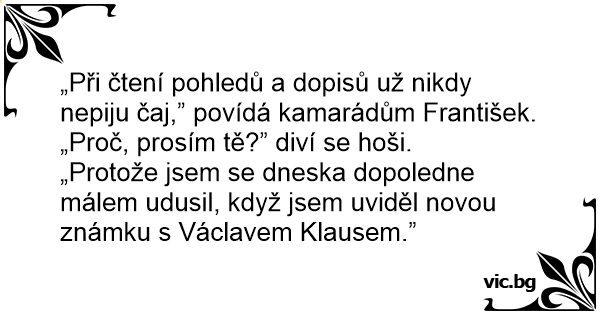 „Při čtení pohledů a dopisů už nikdy nepiju čaj,” povídá kamarádům František.