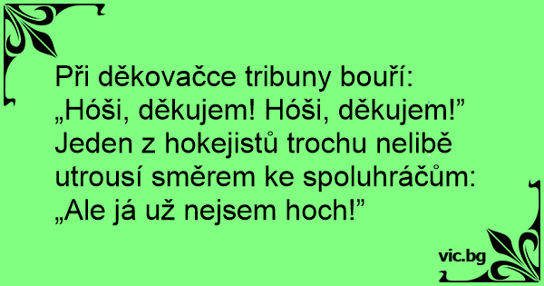 Jeden z hokejistů trochu nelibě utrousí směrem ke spoluhráčům: „Ale já už nejsem hoch!”
