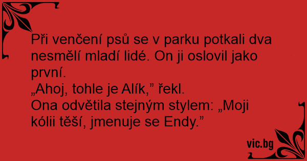 Při venčení psů se v parku potkali dva nesmělí mladí lidé. On ji oslovil jako první.